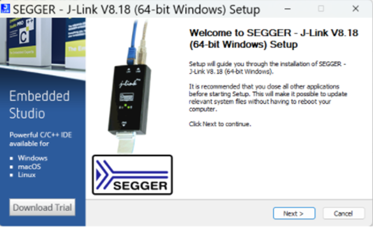 **Note: SEGGER J-LINK Upgrade message might pop up while you’re doing above downloads.