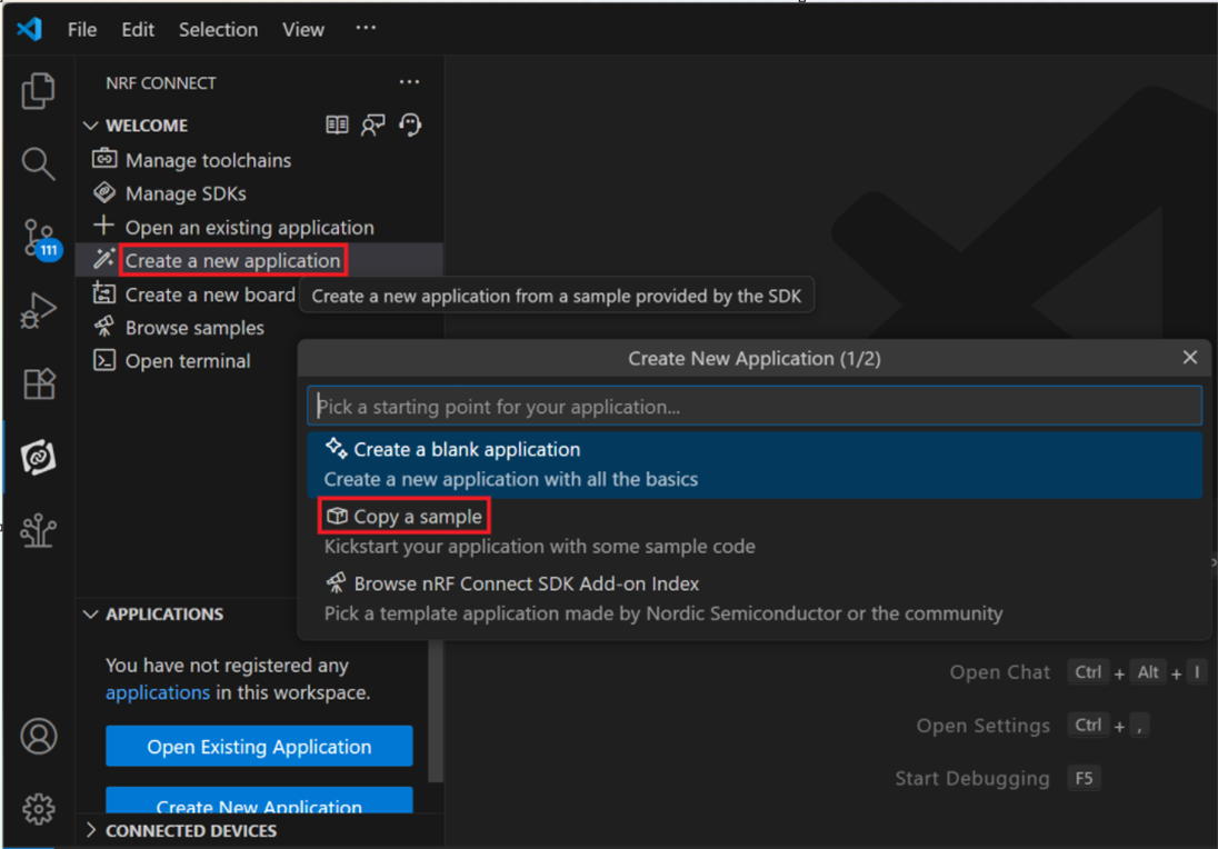 <<Create a new application and Copy a sample>>