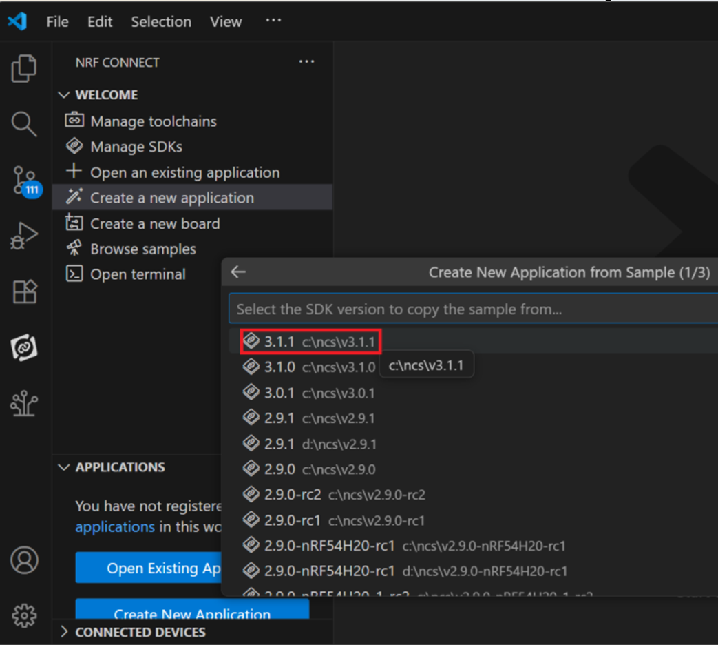 Step 2: Select SDK v3.1.1 to copy the sample