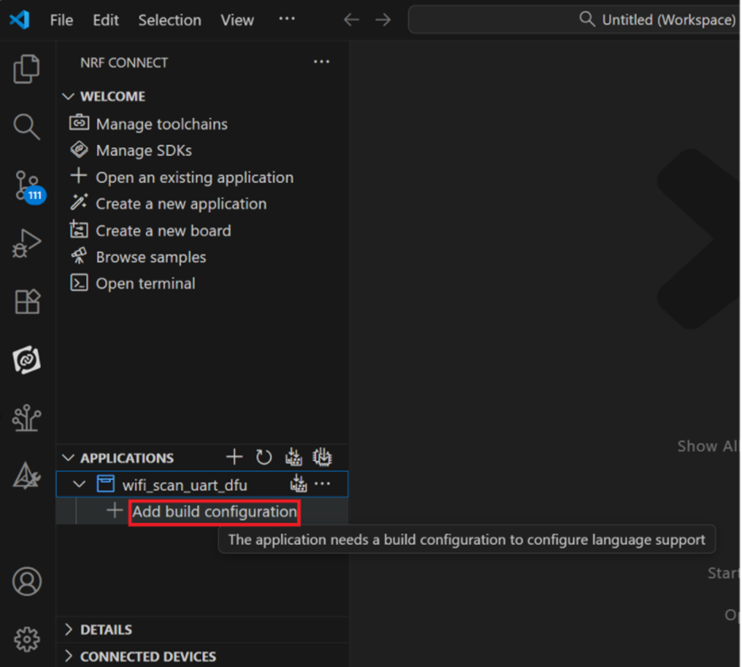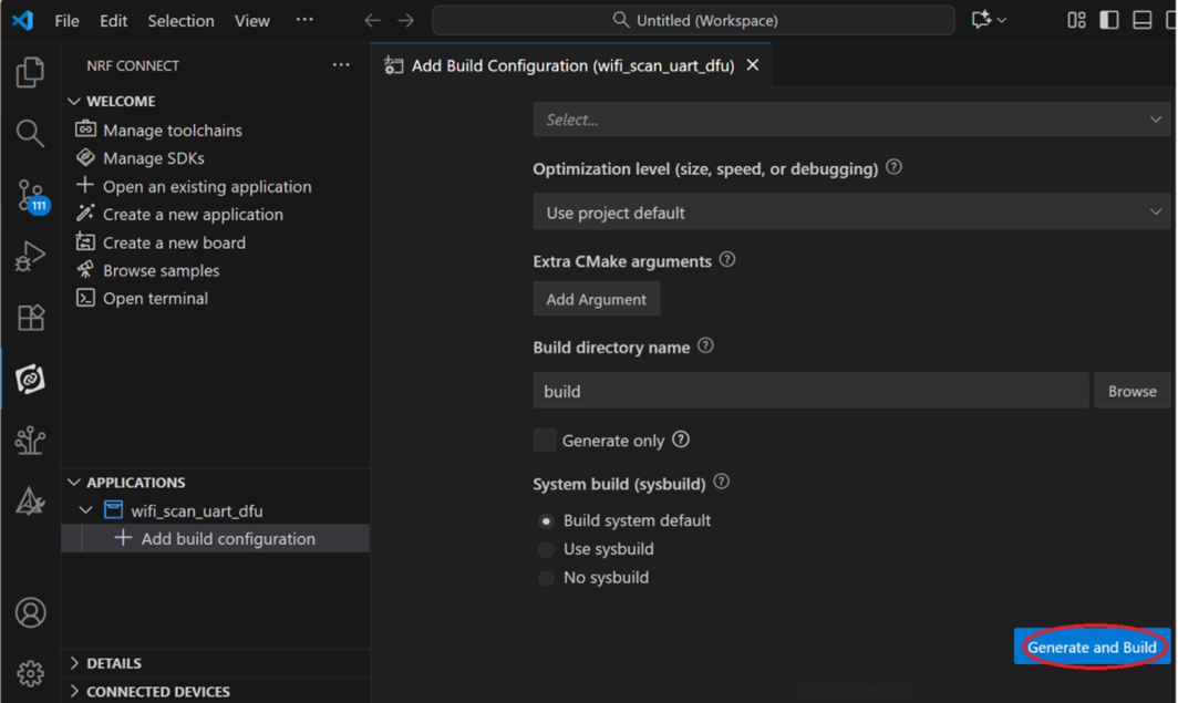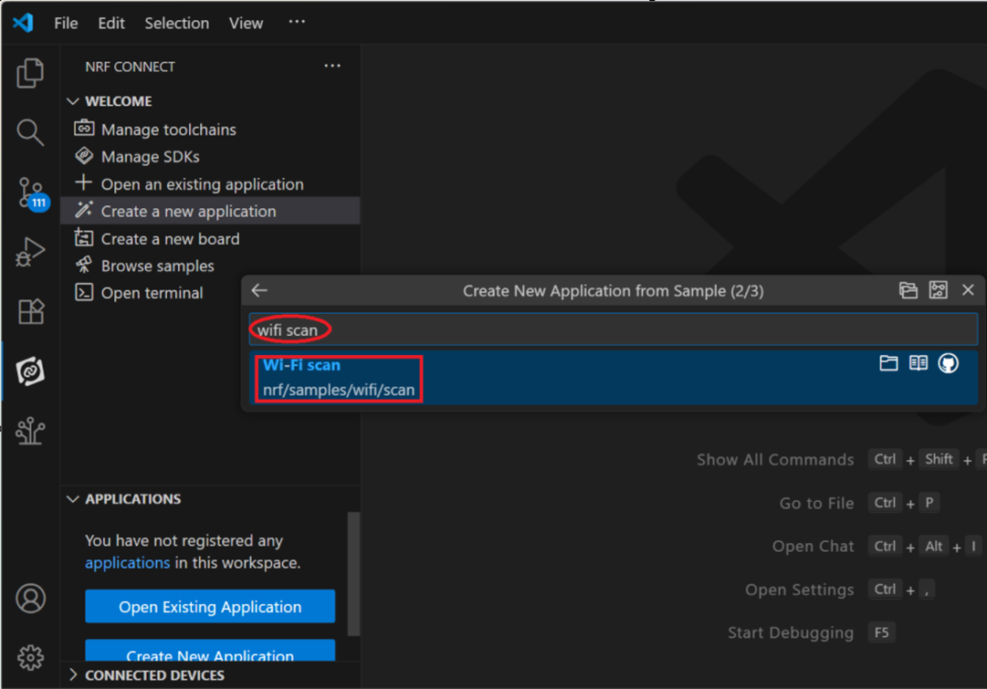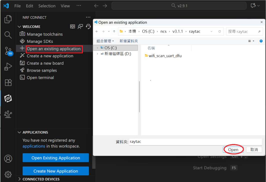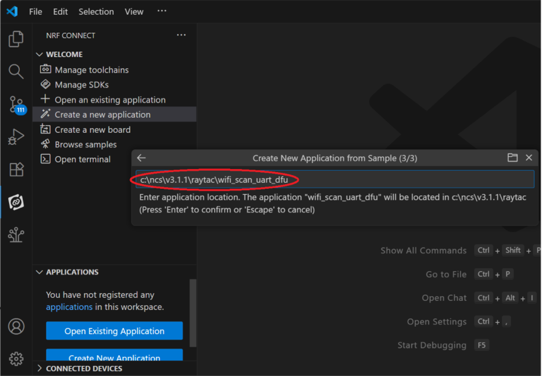 Step 1: Start with a Wi-Fi Scan project and run the program under: C:\ncs\v3.1.1\raytac