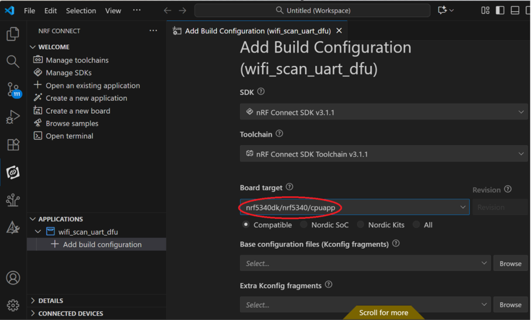 Step 12: Add build configuration >> Choose Board target: nrf5340dk/nrf5340/cpuapp